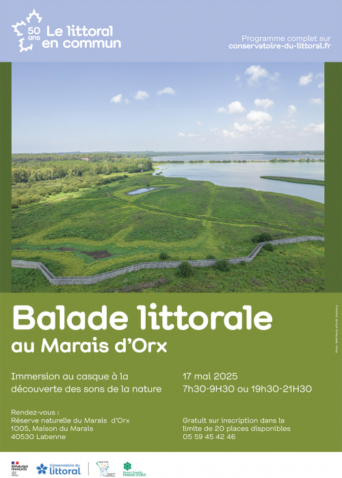 Accompagné des guides naturalistes du Marais d’Orx, Paul Vernhères, musicien, compositeur et preneur de sons, convie le public à une expérience auditive inédite de la nature. Grâce au micro parabolique, qui amplifie les moindres détails, chaque son semble se rapprocher, révélant une richesse sonore insoupçonnée. À l’aube, ou au crépuscule, ces deux balades immersives au casque, invitent à prêter l’oreille et à fermer les yeux …