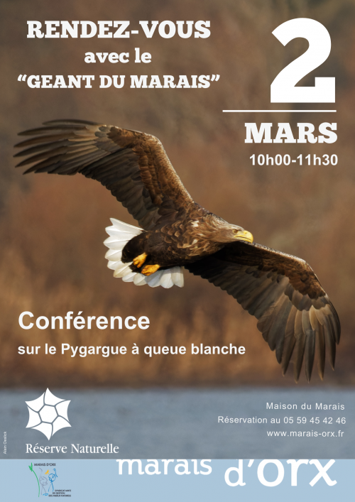Soyez au Rendez-vous et aussi fidèles que le Pygargue hivernant l'est depuis au moins 8 hivers à la Réserve Naturelle du Marais d'Orx.