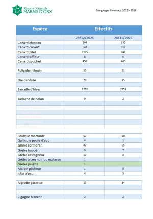 Un peu moins d'oiseaux qu'au mois de décembre et beaucoup moins d'oiseaux que l'an dernier à la même date. Environ 1400 sarcelles manquent à l'appel et le seuil RAMSAR pour les canards souchet n'a pas été atteint. On note toutefois une maintien du seuil chez les canards pilets et un meilleur stationnement des grues notamment.